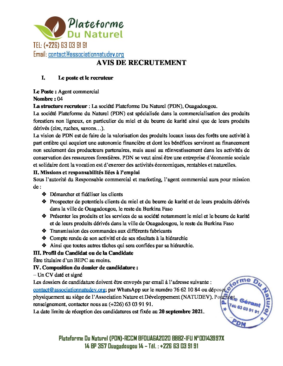 La structure recruteur : La société Plateforme Du Naturel (PDN), Ouagadougou.